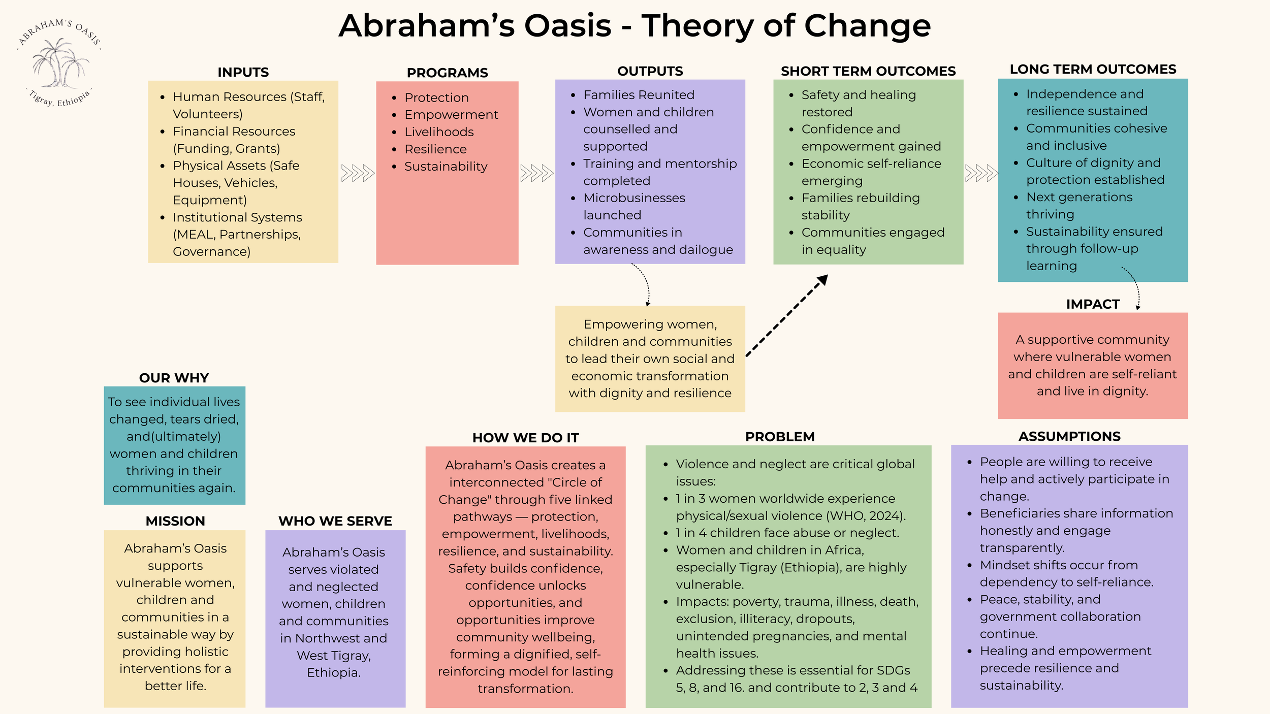 Abraham's Oasis works to break these cycles of harm through a holistic, protection-centred, and empowerment-driven model that restores safety, dignity, and resilience.